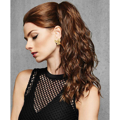 zijn eenvoudige clip-in paardenstaart geeft u 18 inch lang golvend haar dat werkt voor een rode loper of een dag op het strand. Met een 3�?? < ¨ " platte clip krijg je een kleine hoogte die ziet er een veel natuurlijke. Het Tru2Life? Hittevriendelijk synthetisch haar maakt het veranderen van uw stijl zo zorgeloos als u.